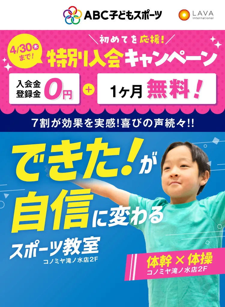 ABCでは、リズム運動・ヨガを始めとした300種以上のメニューを行うことで、運動能力を伸ばすだけでなく、チャレンジしたいと思えるきっかけを作りたいと考えています。「できた!」「楽しい!」という成功体験を積むことで、心身共に成長しながら未来の可能性を拡げてもらえると嬉しいです!